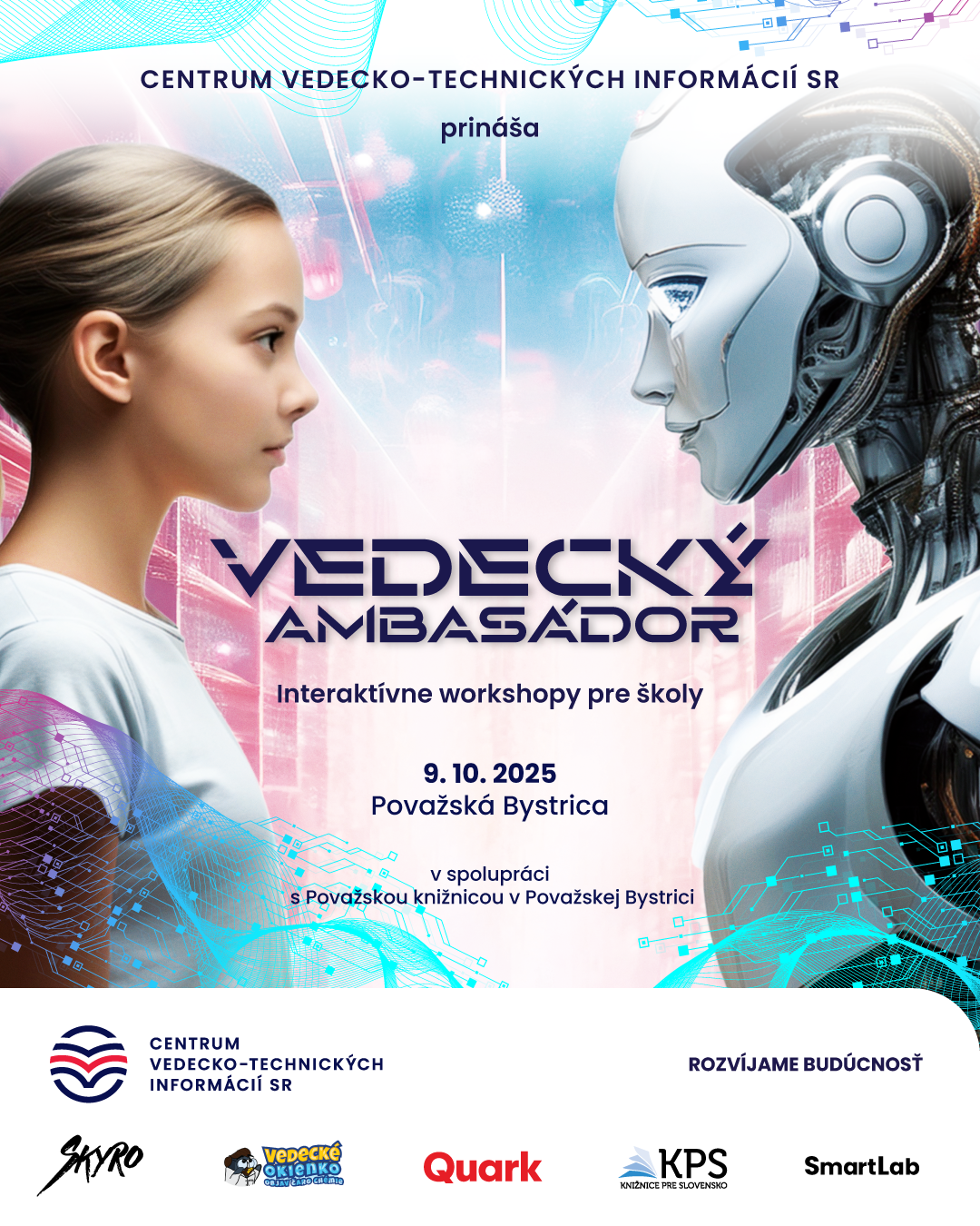 Centrum vedecko-technických informácií SR, ktoré organizuje sériu Vedeckých ambasádorov po Slovensku v spolupráci s vybranými knižnicami, tentoraz prináša projekt do Považskej knižnice v Považskej Bystrici. „Od žiakov a učiteľov základných škôl dostávame pozitívnu spätnú väzbu na projekt Vedecký ambasádor. Počas päťhodinového programu prinášame štyri pútavé workshopy zamerané na využitie umelej inteligencie vo vzdelávacom procese, prácu so zdrojmi informácií, podporu kritického myslenia a informačnú bezpečnosť v online priestore. Účastníci si môžu vyskúšať pyrografiu a technológie 3D tlače, ktoré sú dostupné pre širokú verejnosť v SmartLaboch v päťdesiatich verejných knižniciach po Slovensku,“ priblížila Štefánia Bartošová, riaditeľka Národného centra pre popularizáciu vedy a techniky v spoločnosti.